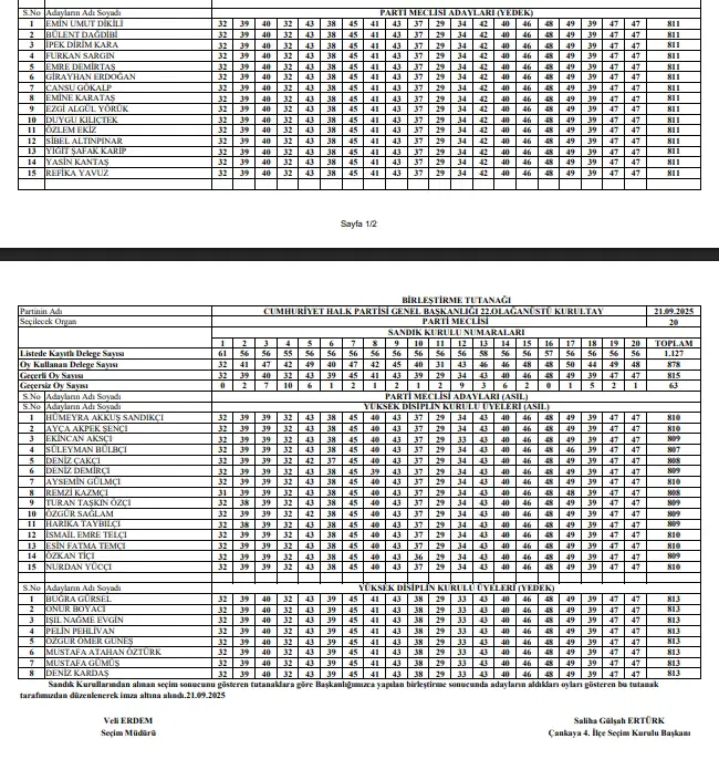 Yüksek Disiplin Kurulu listesinde ise Çankaya İlçe Başkanı seçilen Ali Balta’nın yerine Edirne İl Başkanı Harika Taybıllı yer aldı.